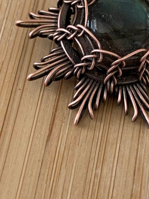 The copper wire is oxidized and polished gently by hand. I also treat all my copper jewelry with a hypoallergenic coating to prevent further oxidation.