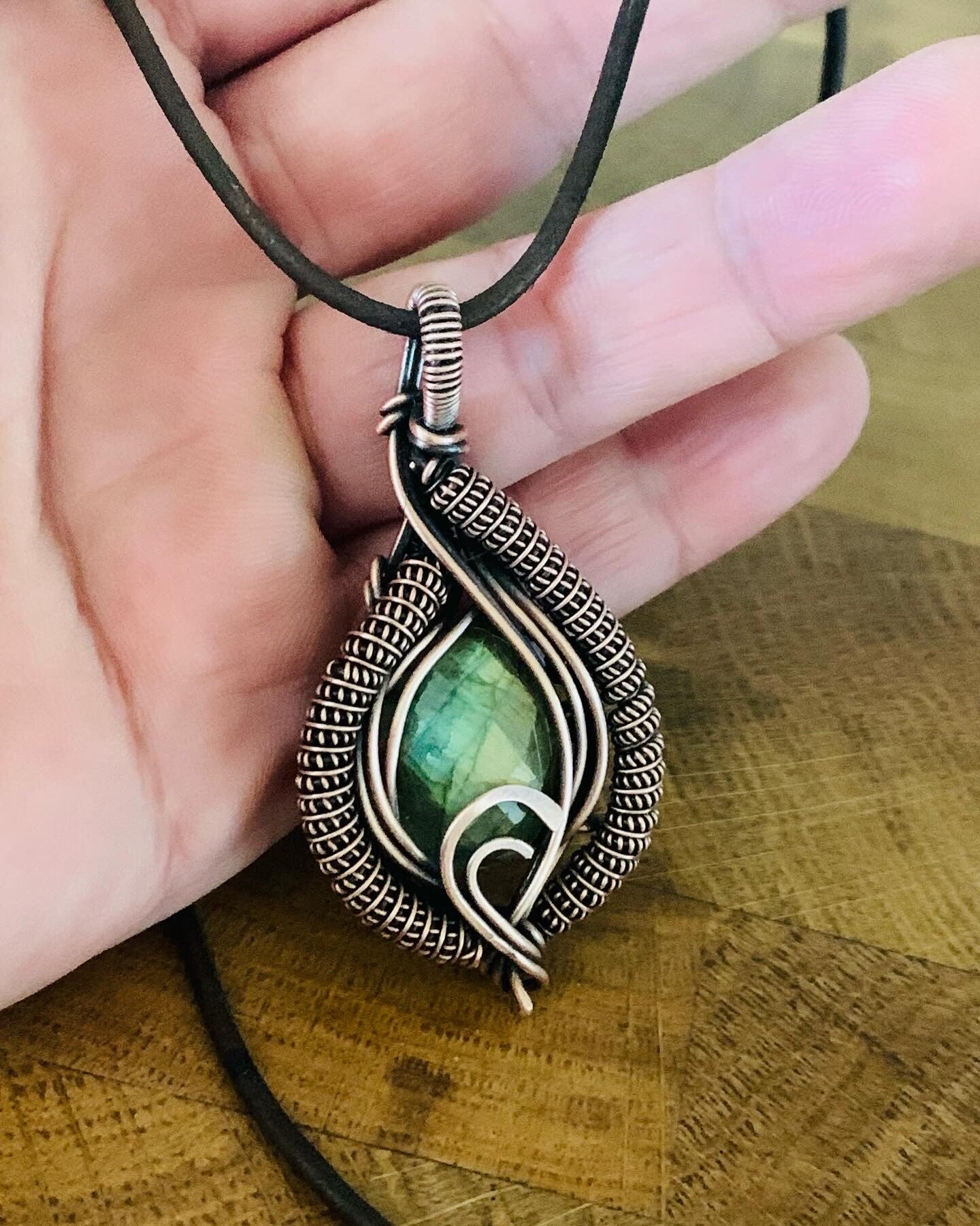 One of a kind labradorite pendant wire wrapped with bare copper.